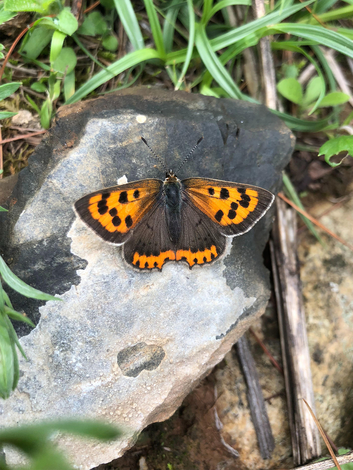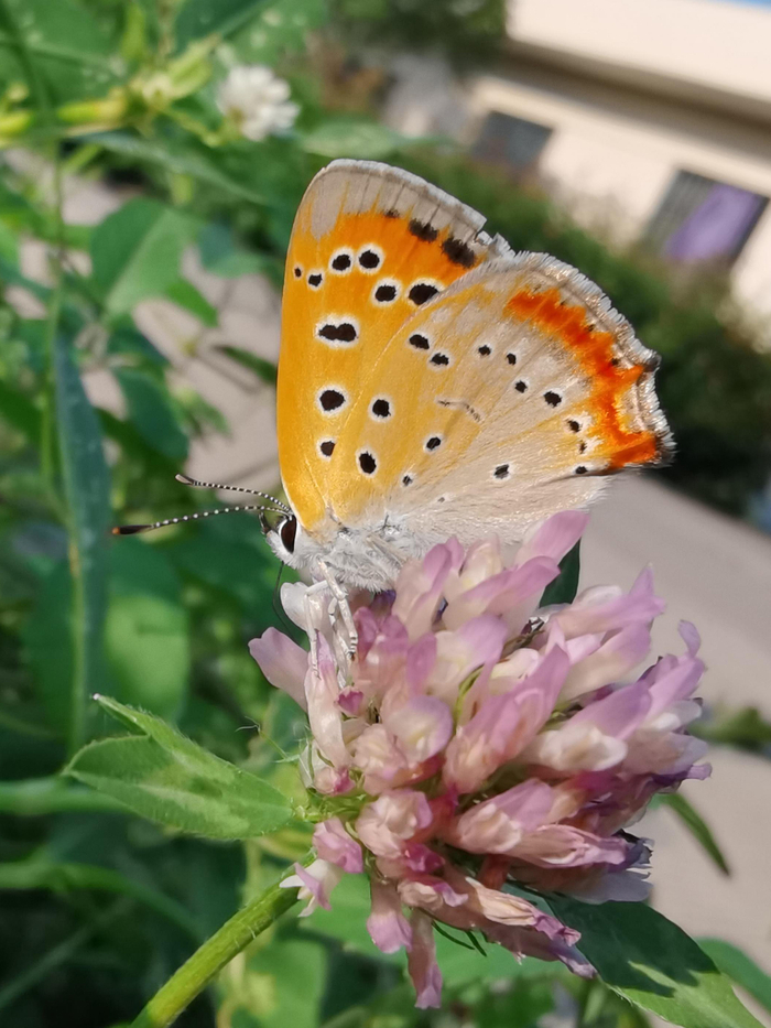 红灰蝶属鳞翅目灰蝶科,属小型蝶类,翅展3.5厘米左右。红灰蝶雄蝶展翅宽26—36毫米,雌蝶宽30—40毫米,前翅翅面有橙红色斑纹,配有棕黑色的外缘和斑点;后翅翅面则较暗沉,外缘有如灯焰的斑带。