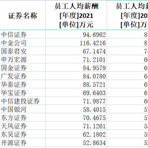 券商2022年薪酬大盘点:中信证券人均薪酬83万居第一, 兴业证券降薪45%降幅最大