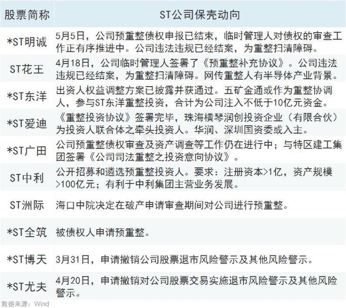 附:近期破产重整、保壳重点ST公司一览