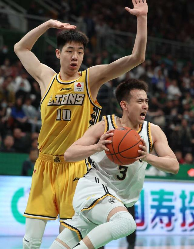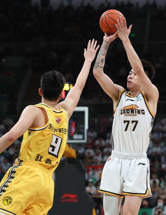 5月5日,辽宁沈阳,2022—2023赛季中国男子职业篮球(CBA)半决赛辽宁本钢队和浙江东阳光队的比赛中,辽宁队77号张镇麟(右)为辽宁队贡献了21分,全队最高。A刘占崑/摄