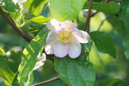据悉,这是蜡梅家族中比较特殊的一个品种,名为“夏蜡梅”。不同于一般蜡梅冬季开花的习惯,夏蜡梅直到初夏才会吐露芬芳,十分珍稀。