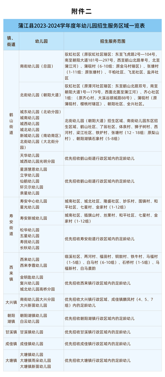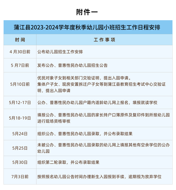 蒲江县2023—2024学年度秋季幼儿园招生工作细则