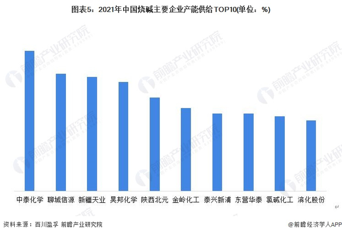 从企业分布来看,截至2021年底,根据百川盈孚数据,在全部生产企业中产能超100万吨/年的企业仅4家,即新疆中泰、聊城信源集团、新疆天业和昊邦化学,产能占比分别为2.96%、2.48%、2.41%、2.30%;年产能高于60万吨的企业共10家。行业以中小企业为主,CR4=10.15%,CR10=20.23%,属竞争型市场。