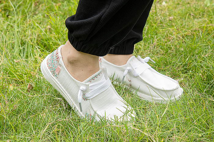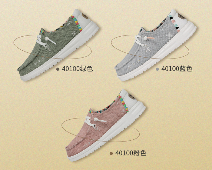 棉麻风鞋面+田园元素图案装饰,搭配宽鞋带,尤其悠闲自在。