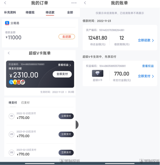 开甲财经在黑猫平台搜索“兰州银行”发现,包括畅X花、小X优品、X享花、新X优品等十几家借款APP合作资方为兰州银行。例如,2022年12月,有网友发帖反映,其2022年11月23日在分期易借款1万元,分12期,累计要还12481.80元。申请提前还款,分期易还强制扣除会员权益2310元。