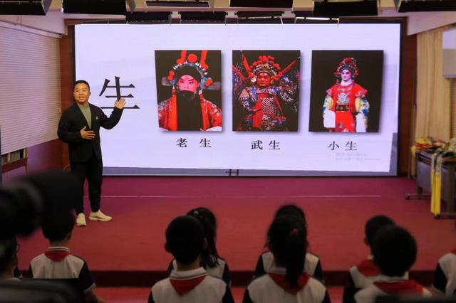 来自梅兰芳纪念馆的老师重点为同学们介绍京剧的形成以及生旦净丑各行当的特点,过程中还穿插着京剧经典片段的表演,从京剧基本知识、服装的服色及表演程式等方面,向学生普及京剧艺术,以讲解与演出相结合的形式让学生体验到京剧的与众不同之处。