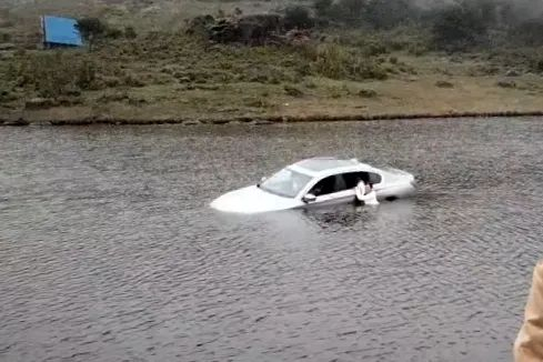 5月2日上午10时许厦门的周某带着家人和朋友驾车前往宁德市古田县泮洋乡途中周某操作失误车辆失控冲进路边水潭车内5人被困,命悬一线