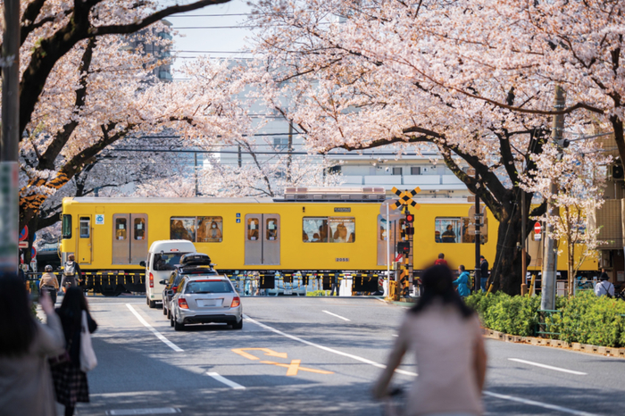 我觉得这张图太好看了,非常日本,还有大片的樱花。不过我还是要和大家说明一下,这是在4月份,是一年里最好看的时候,比较短暂。