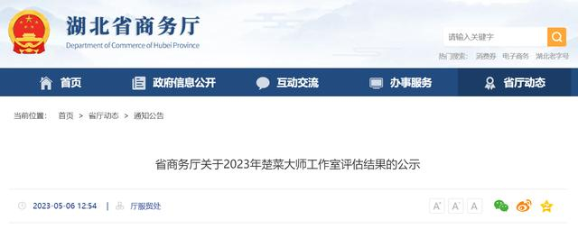 根据省促进楚菜创新发展联席会议《关于印发楚菜大师工作室管理办法的通知》(鄂楚菜联办〔2022〕2号),湖北省商务厅组织开展了2023年楚菜大师工作室项目申报和评估,确定楚菜大师工作室共计20家,现将有关结果公示如下(排名不分先后):