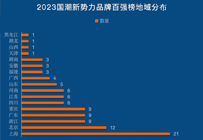 从地域来看,总部位于上海、北京的百强品牌最多,分别有21个和12个,占据了总数量的1/3。此外,浙江、广东、重庆三省(市)则以9个上榜品牌并列第三,TOP6省市拥有的百强品牌数量占总数量的60%。