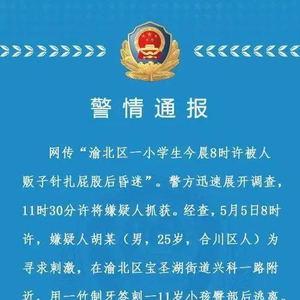 5月5日,一则关于“重庆渝北一小学生被人贩子针扎屁股后昏迷”的消息在社交平台上流传,引发网友关注。