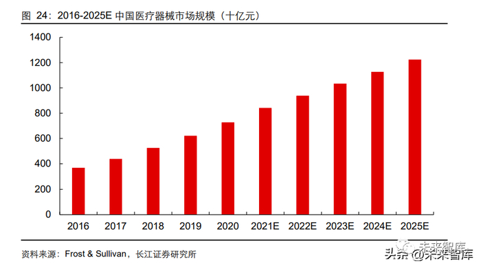 医疗器械行业预期发展增速快,拉动生物洁净室市场。中国作为仅次于美国的全球第二 大医疗器械市场,目前我国的医疗器械制造大量中低耗材已基本实现进口替代,但部分 高值耗材类器械基本处于被进口产品垄断的状态。根据 Frost & Sullivan 数据,2020- 2025 我国医疗器械市场规模的复合年增长率将达到 10.9%,到 2025 年达到 12267 亿 元。未来,随着我国老龄化、医疗器械国产化的不断加快,医疗器械需求不断释放,医 疗器械产业的扩容升级,为洁净室行业提供更为广阔的市场空间。