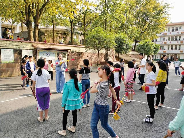 困境交织下,前锋区也给出应对之策。作为前锋区非物质文化遗产传承基地,得胜小学以宕渠双竹连响这一非物质文化遗产为载体,把自编的双竹连响表演节目《丰收》融入到学生的大课间活动中。