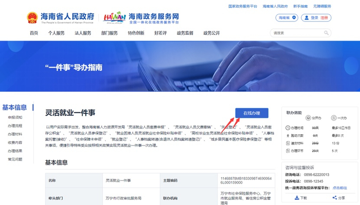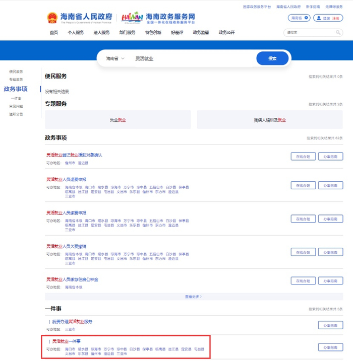 为规范灵活就业保障,解决从业者办事困扰,海南省人力资源开发局联合省社会保险服务中心、省住房公积金管理局、省医疗保障局近日基于省大数据管理局建设的“海易办”平台基础能力,将12个相关事项进行打包整合推出“灵活就业一件事”联办服务。