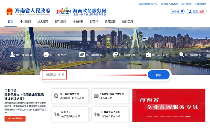 第二步,搜索框输入“灵活就业一件事”并搜索。