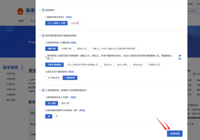 请打开海南政务服务网根据以下步骤点击操作: