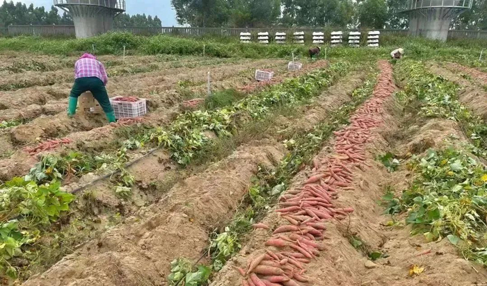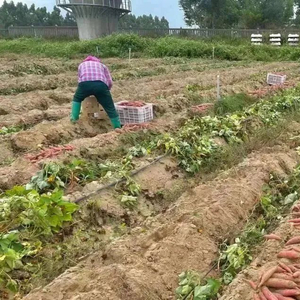 在井都镇神山社区田地里,10多名农民工用双手慢慢地刨开沙土,一串串色泽鲜红的“西瓜红”甘薯出土了,一派丰收繁忙的喜人景象。“我种植甘薯400多亩,今年喜获丰收,亩产达3000多公斤,这些甘薯经精挑细选后,将销往全国各地。”来自福建厦门的种植户曹子寒笑道。