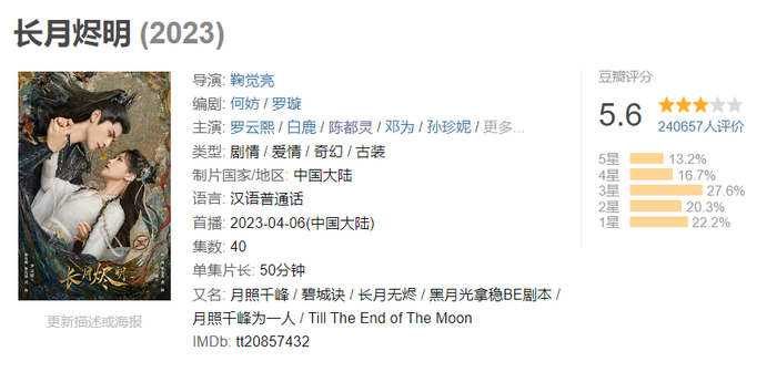 《长月烬明》在豆瓣的评分跳到及格线6分以下