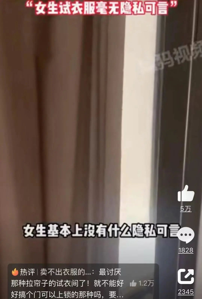 这条视频引发来不少网友,特别是女性网友的共鸣:“每次在这种试衣间试衣服都特别慌”。