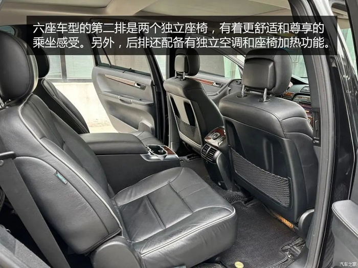 奔驰R级有六座和七座车型之分,在配置上像前排座椅电动调节、前排座椅加热、自动空调、多功能方向盘、无钥匙启动等都配备。