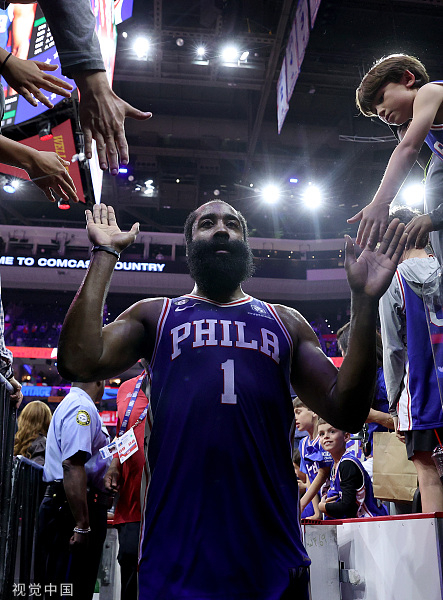 5月8日,费城76人在NBA东部半决赛第四场116-115险胜波士顿凯尔特人,将总比分追成2-2平。此役,哈登砍下42分8篮板9助攻。