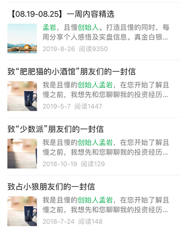 八妹在且慢官方微信公众号搜索关键词“创始人”,可以看到在2019年之前,多篇文章中提到孟岩是且慢的创始人,并且,孟岩的实证系列也的确是且慢早期内容的重头戏。