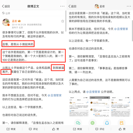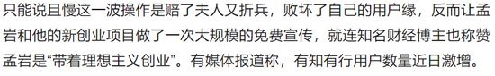 但无论是当时文章下的用户留言,还是孟岩说的“不得不在这里画下了句点”,都能看出他似乎并不是心甘情愿的离开。而这次双方的开撕,也再次证明了这一点。