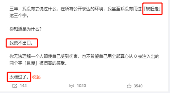 这应该是我第一次对外说‘被逼’这个词,当时发生的所有情况,我的伙伴在现场录制的视频以及大家的辞职信现在还躺在我的手机里。
