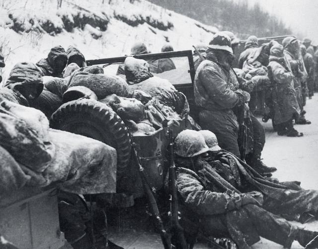 12月4日14时,陆战5、7两团主力才进入下碣隅里与师部会合——短短22公里路程,先头部队用了59个小时,后卫部队用了77个小时,损失155榴弹炮9门。