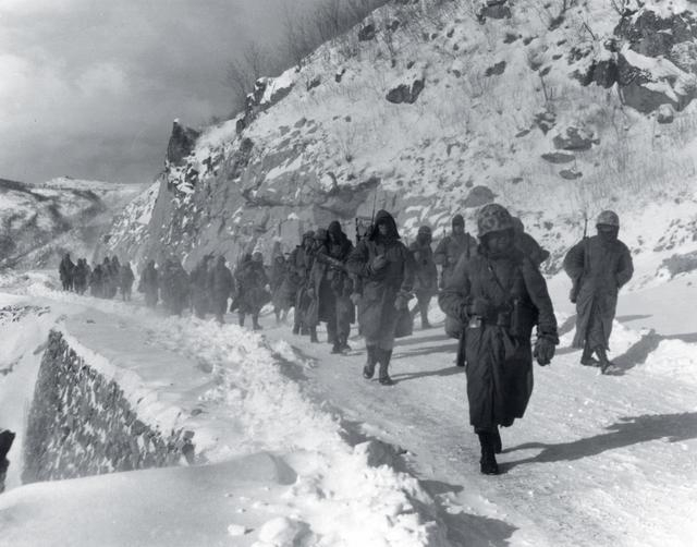 11月30日下午,阿尔蒙德已经完全看清了形势。他命令史密斯改变原计划,决心弃守柳潭里,让陆战5、7两个团一块突向下碣隅里。