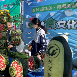 大西瓜、小西红柿、烩火烧、水煎包、葡萄酒……在现场摊位前,有的村民拿出自家种的新鲜水果,一字排开,邀请游客免费品尝;有的则摆开架势,展示绝活,现场制作;还有“学院派”大秀刀工,7个大小一般的西瓜一字排开,雕刻着此次美食节的主题“乡村好时节LET'S购”,还有用西瓜皮制作的灯笼、用西式糕点制作的小秋千等,游客们三三两两围在旁边,大饱口福与眼福。