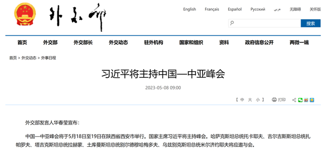 外交部网站今日早间消息,中国—中亚峰会将于5月18日至19日在陕西省西安市举行。国家主席习近平将主持峰会。哈萨克斯坦总统托卡耶夫、吉尔吉斯斯坦总统扎帕罗夫、塔吉克斯坦总统拉赫蒙、土库曼斯坦总统别尔德穆哈梅多夫、乌兹别克斯坦总统米尔济约耶夫将应邀与会。