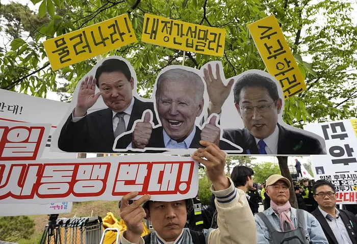 本月初,美国政府高官透露,拜登将在5月赴日本出席G7广岛峰会期间,与岸田文雄、尹锡悦举行三方会谈。《纽约时报》评论称,日韩关系回暖对美国意义重大。