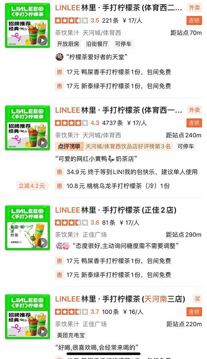 比如,丘大叔柠檬茶、LINLEE、茶救星球均在天河南一路布局了三家门店。LINLEE还在距离天河南一路直径不过数百米外的宏发大厦、又一城、维多利广场三个点位也开设了门店。