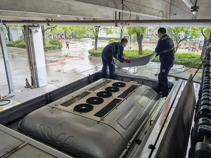 为确保空调设备正常投入使用,并保障车内空气环境卫生安全,上海公交行业开展车辆空调“洗肺”工作。