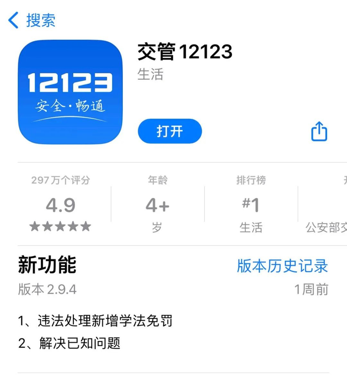 顶端新闻记者发现,在交管12123APP最新版本的更新说明中,有一项“违法处理新增学法免罚”。