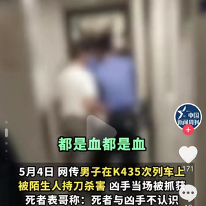 近日,网传5月4日晚K435次列车上一男子被人持刀杀害。视频中,受害者母亲质问铁路有关人员,“这么长一把刀,你们怎么可以随意就让他带上车?”5月7日,“男子火车上被陌生人持刀杀害”话题冲上热搜,引发网友关注。