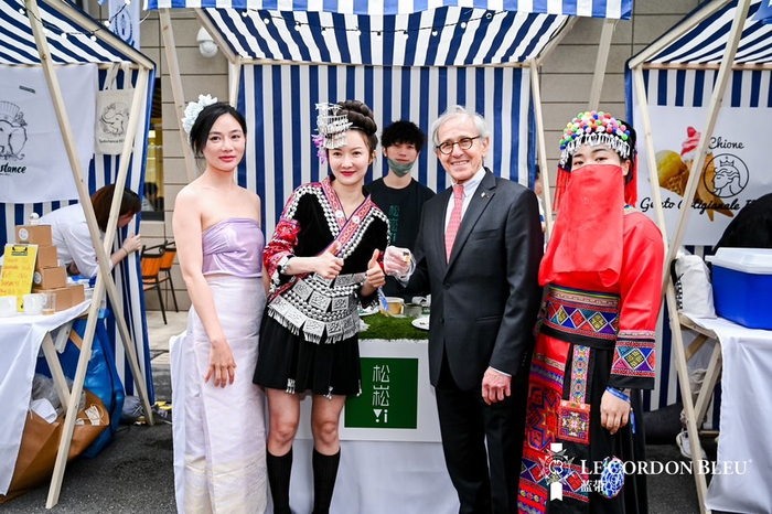在美食市集,吸引了近20家中、法餐饮、食材品牌参与。其中包括来自湖北武汉的百年老字号“德华楼”、沉浸式甜点新秀“巧克力皇后”等众多品牌参与,这些品牌均为蓝带校友创办或担任品牌管理前来参展。他们将在蓝带的所研习的厨艺技能与知识理念运用到餐饮事业中,结合了中西餐的优势,打造设计出了既独具风味特色,又能够满足市场期待的美食新作。