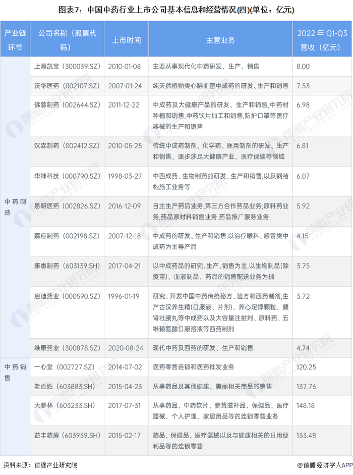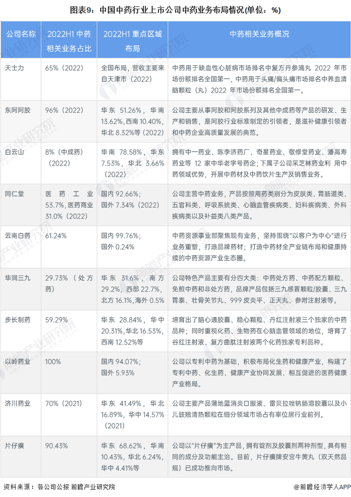 中药行业上市公司业务布局对比