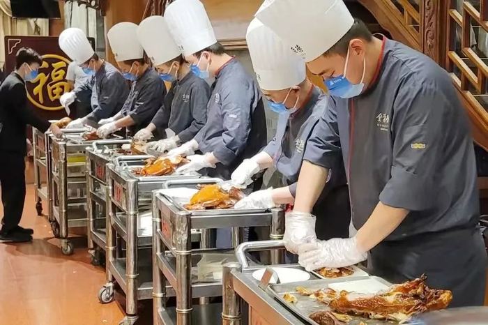 餐饮企业出现在用餐高峰期“一桌难求”的热闹景象,迎来了又一个经营高峰。全聚德集团所属全聚德、仿膳、丰泽园、四川饭店四大餐饮品牌门店每天都是排队等位状态,成为各大商圈火爆的美食打卡风景线之一,其中全聚德北京地区直营门店还推出了2023年新版菜单,新菜品的口味和颜值均令人惊喜。东来顺集团各家门店生意火爆,包间及大堂散台均座无虚席,排队的顾客络绎不绝。同时,东来顺集团还积极参与各类促消费活动,既宣传了东来顺品牌,又为门店起到了引流效果。
