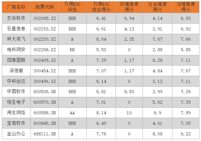 据零壹智库统计,A股共有12家软件服务商被国际知名ESG评级机构明晟给予了评级。这些服务商大多为知名的信创和金融科技公司,其主要业务类型包括软件开发、信息系统、人工智能、金融IT服务等。