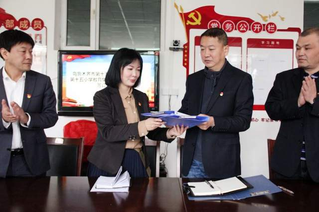 长风破浪会有时,直挂云帆济沧海。5月1日上午11时,已近立夏,乍暖还寒。第十五小学教育集团在党委书记钱海燕同志的带领下,先后前往第七十三小学、第九小学,两校党支部书记樊红艳同志和于新亮同志分别携班子成员在校门口迎接钱海燕书记一行,在两校领导集体的迫切期待中,集团总校分别与第七十三小学、第九小学签署了“第十五小学教育集团与第七十三小学联盟发展协议书”和“第十五小学教育集团与第九小学联盟发展协议书”。随后,两校揭牌仪式的顺利举行,引得现场一阵阵热烈的掌声……