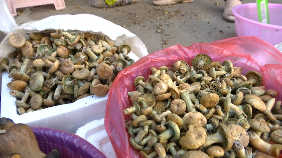 木水花野生菌交易市场市场部主管 翟占世:“今年野生菌比往年少了很多,比较多的几种菌都是外省过来的,像谷熟菌、荞面菌这两种。本地就是以鸡枞和黑牛肝为主,黑牛肝稍微多一点,鸡枞就比较少了,基本上能有十几二十斤就不错了。”