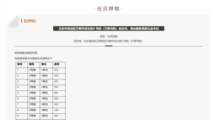 5月6日,中国信达在京东拍卖上对47亿不良债权进行转让,对应的抵押物正是75套万柳书院房产。依此计算,每套房平均6260万。