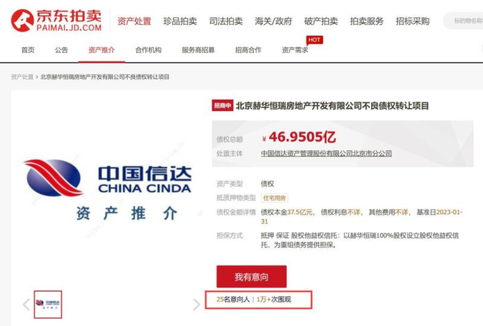 截至发稿,已经出现25名意向人,超过1万人次围观,是目前中国信达所有招商债权中关注度最高的一个。
