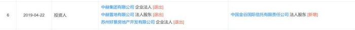 股东信息显示,北京赫华恒瑞曾由中赫集团有限公司控股,2019年4月,原股东中赫集团有限公司及旗下中赫置地有限公司、苏州好景房地产开发有限公司均退出股东,中国金谷国际信托有限责任公司全资入股。
