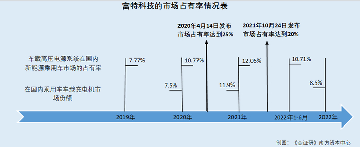 同时,招股书披露,2019-2021年及2022年1-6月,富特科技车载高压电源系统在国内新能源乘用车市场的占有率分别为7.77%、10.77%、12.05%、10.71%。