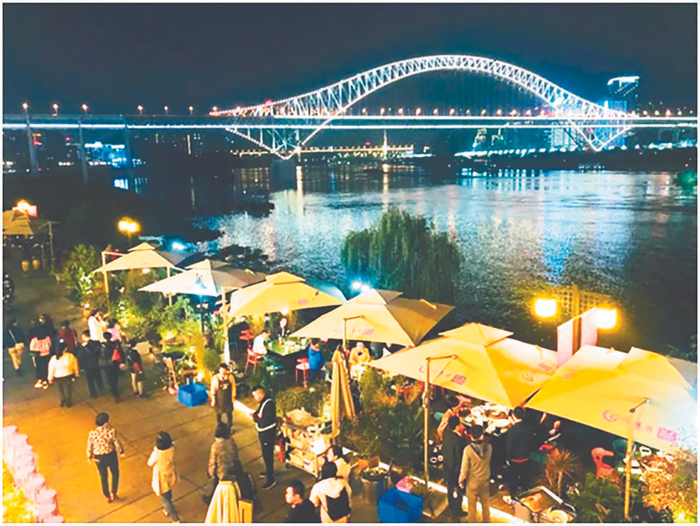靠出色的“颜值”出圈迅速引流只是三洞桥风情街打造文旅地标的第一步,如何修炼内功,让流量变“留量”才是王道,这也深深地考验着城市建设开发运营主体。作为三洞桥风情街整体的开发建设者,江北嘴投资集团从经营上发力,旗下江北嘴置业有限公司更是围绕街区建设与管理持续“输血”。其中,外街除了都市休闲旅游,商业辅以餐饮、娱乐、演艺、阅读等业态,同时引入符合项目调性的首店品牌及“引爆点”的IP,实现项目整体品质调性与文化的融合协调,吸引了成渝双城消费节、“爱尚重庆”消费节等多场主题活动落地。