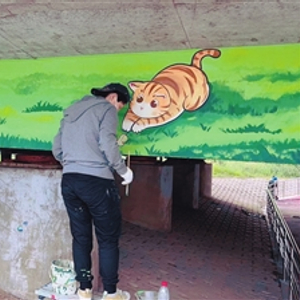 为了还原这处特别“景观”的由来,记者采访了皇姑区城管局绿化科科长王硕。她表示,去年4月北塔公园启动了升级改造工作,当时施工单位入场时就发现了桥下居住着几只流浪猫,“听说这几只猫已经在这居住几年了,当时它们住在桥下废弃的一个变电箱的小洞里,洞口已破损成不规则形状,桥下路面不整碎石满地。我们考虑到人和动物的关系在城市生态中具有举足轻重的意义,是衡量一座城市生态品质和人文精神的重要因素,城市动物也应该是城市资源的‘共享者’,于是决定不驱逐流浪猫,而是请来专业人士根据流浪猫的颜色和形态把它们画成了壁画,并用防腐木给小猫的家做装饰,给小动物们营造出一个舒适的居住环境。没想到,这处景观还成为了公园的一处亮点,吸引众多市民前来打卡。”
