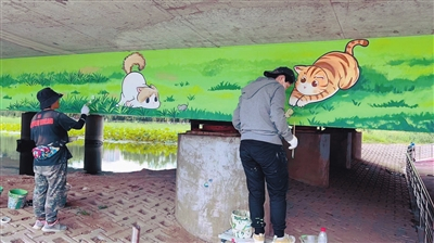 “听说当时在桥体上画这幅壁画时,绘画者正是根据这里的流浪猫创作的,画里的每一只猫都能找到原型。”一位游客告诉记者,他是一位爱猫人士,隔三岔五就会来到桥下送来猫粮,公园用心的设计改造成全了他的爱心。